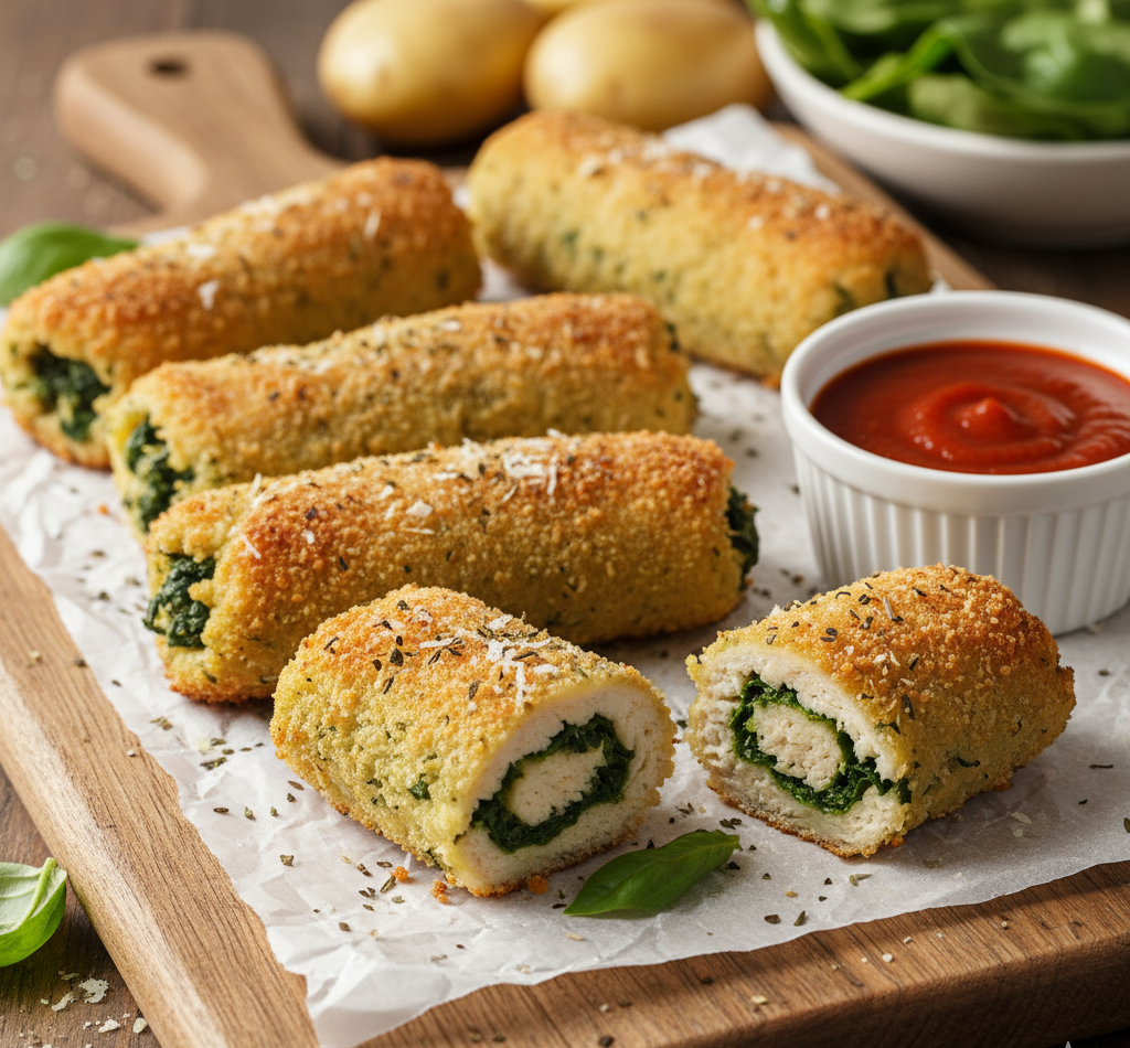 Ground chicken rolled with potato & spinach w/blend of Italian seasoning