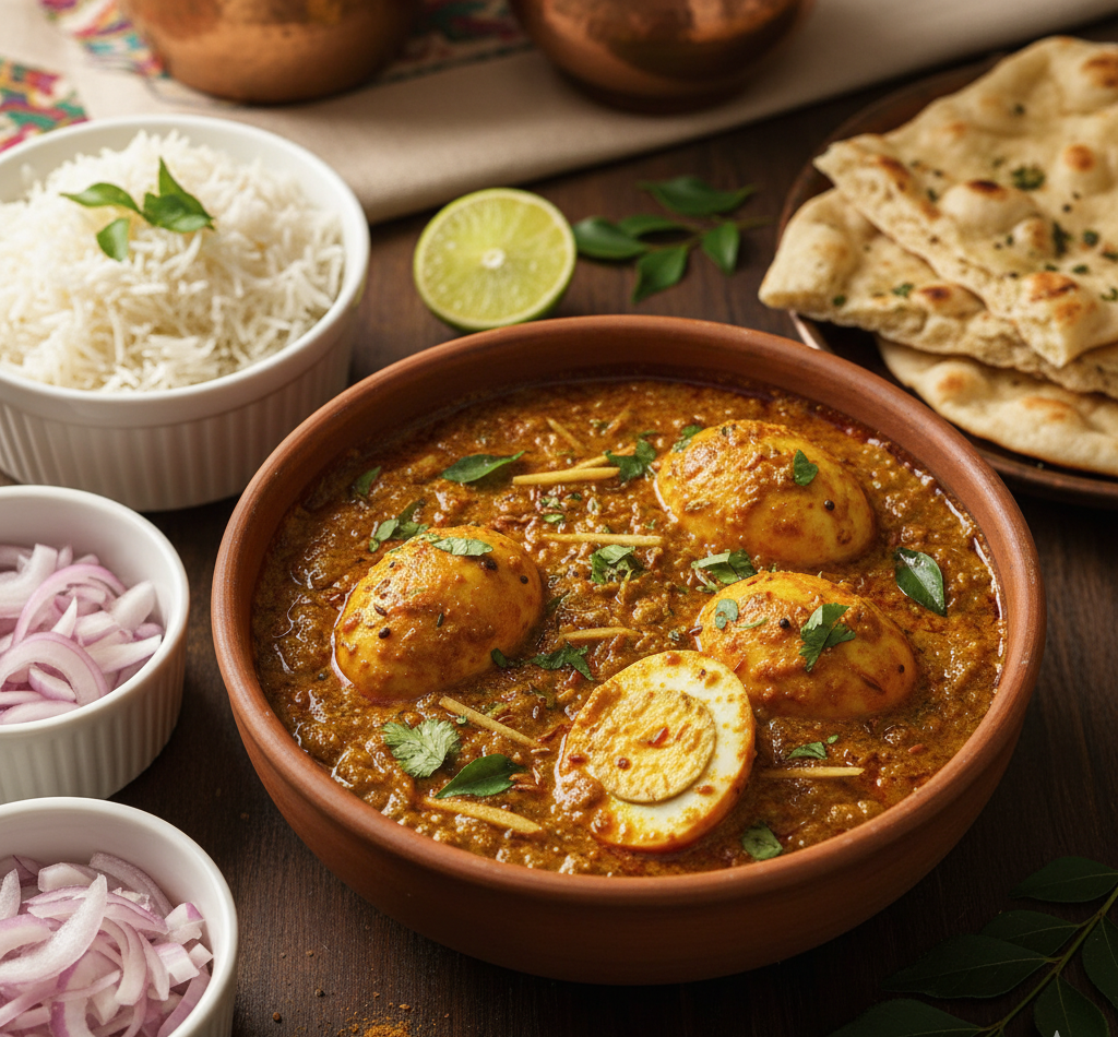 Curried egg with a blend of Indian spice gravy